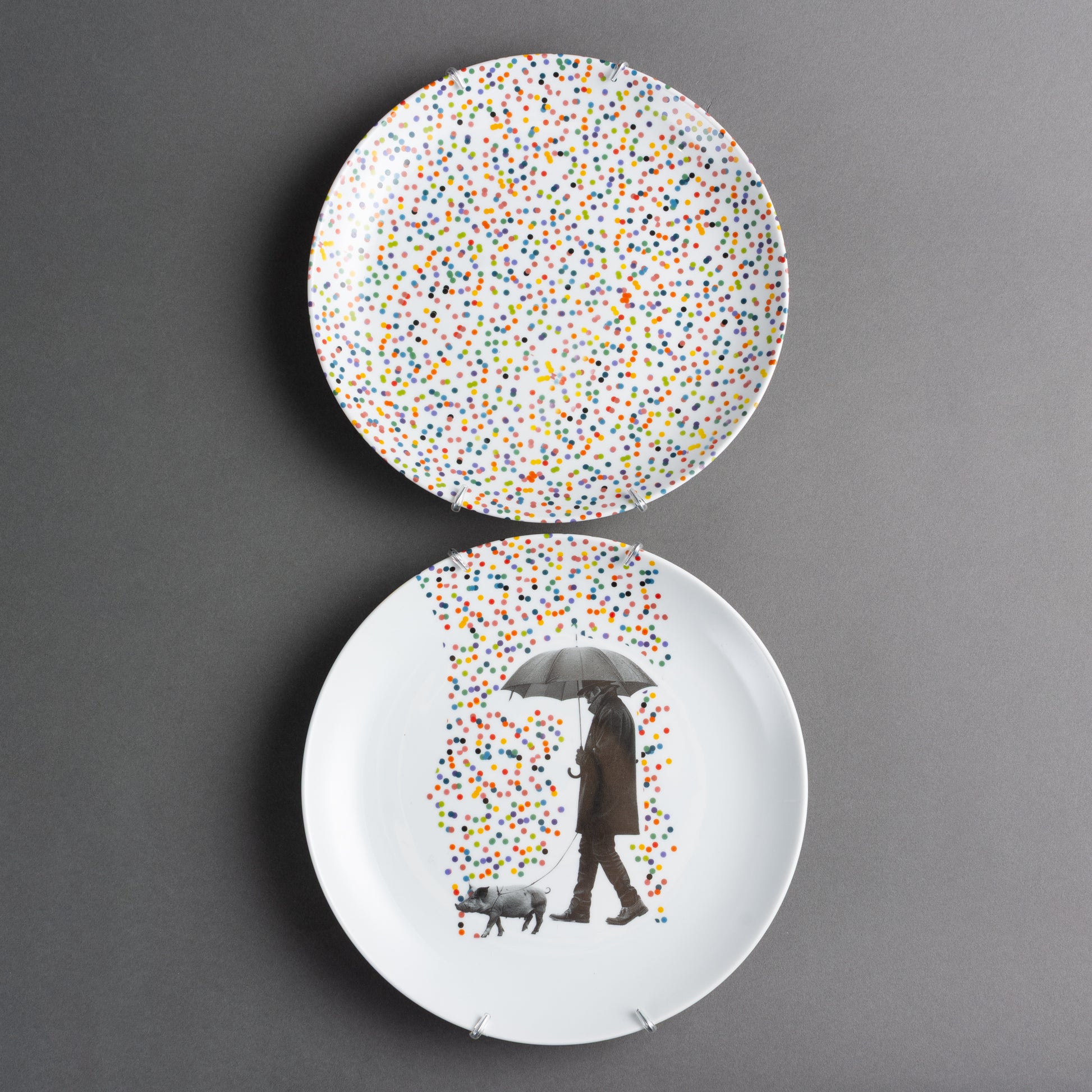 CJ 02 PRATOS CHUVA DE CONFETEMEDIDA DE CADA PRATO: DIAM 26,5CM MATERIAL: CERÂMICAPESOTOTAL: 02 PRATOS 1.800G