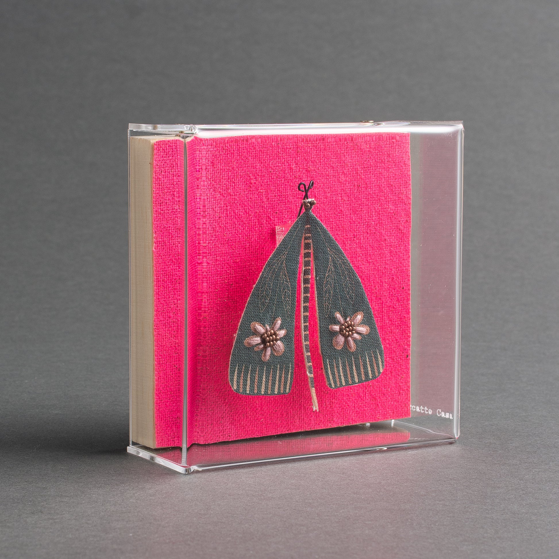 QUADRO ACRÍLICO BORBOLETA VERDE FUNDO PINK11,5X11,0X4,5cmMADEIRA, TECIDO E ACRÍLICO170g