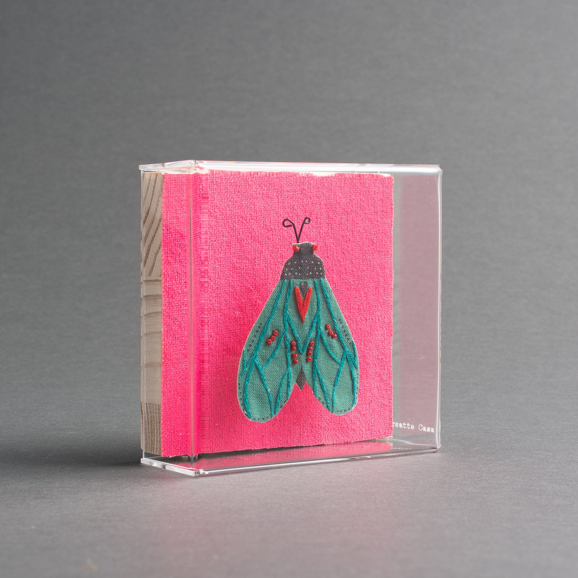QUADRO ACRÍLICO BORBOLETA VERDE FUNDO PINK11,5X11,0X4,5cmMADEIRA, TECIDO E ACRÍLICO170g